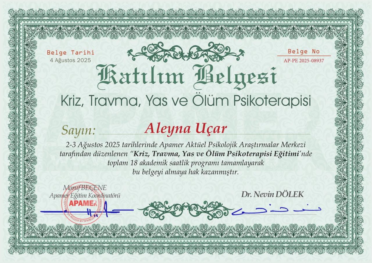 - 32 saatlik İleri Düzey Psikopatoloji Eğitimi (Kln. Psk. Bengisu Çetin)